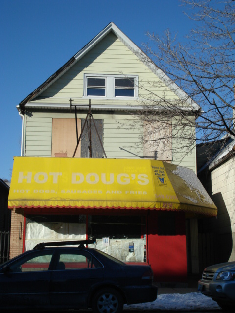 The mixed use building at 2314 W. Roscoe used to house Hot Doug's until a fire broke out, and Corny's Hot Dog's before that. An apartment is located behind and above the hot dog stand. Hot Doug's relocated to 3324 N. California, but the building has stood vacant since April 2004.