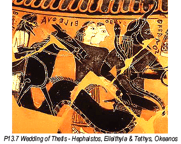 Tethys is depicted in Greek vase-paintings attending the wedding of her grand-daughter